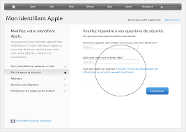 سوف يقوم الموقع بسؤالك سؤالين سريين عليك الإجابة عليهم لتتمكن من تغير البيانات فإذا لم تستطع الإجابة أو لا تذكرها قم بالضغط على نسيان الإجابة، ولاحظ أن أبل تذكر لك أي إيميل سوف يتم إرسال الرسالة عليه.